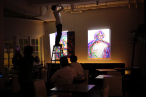車で絵を運んでくれるカオちゃんが、搬入日の15日曜日の日中お仕事だということで、事前に絵を運んでもらう。車パンパン。