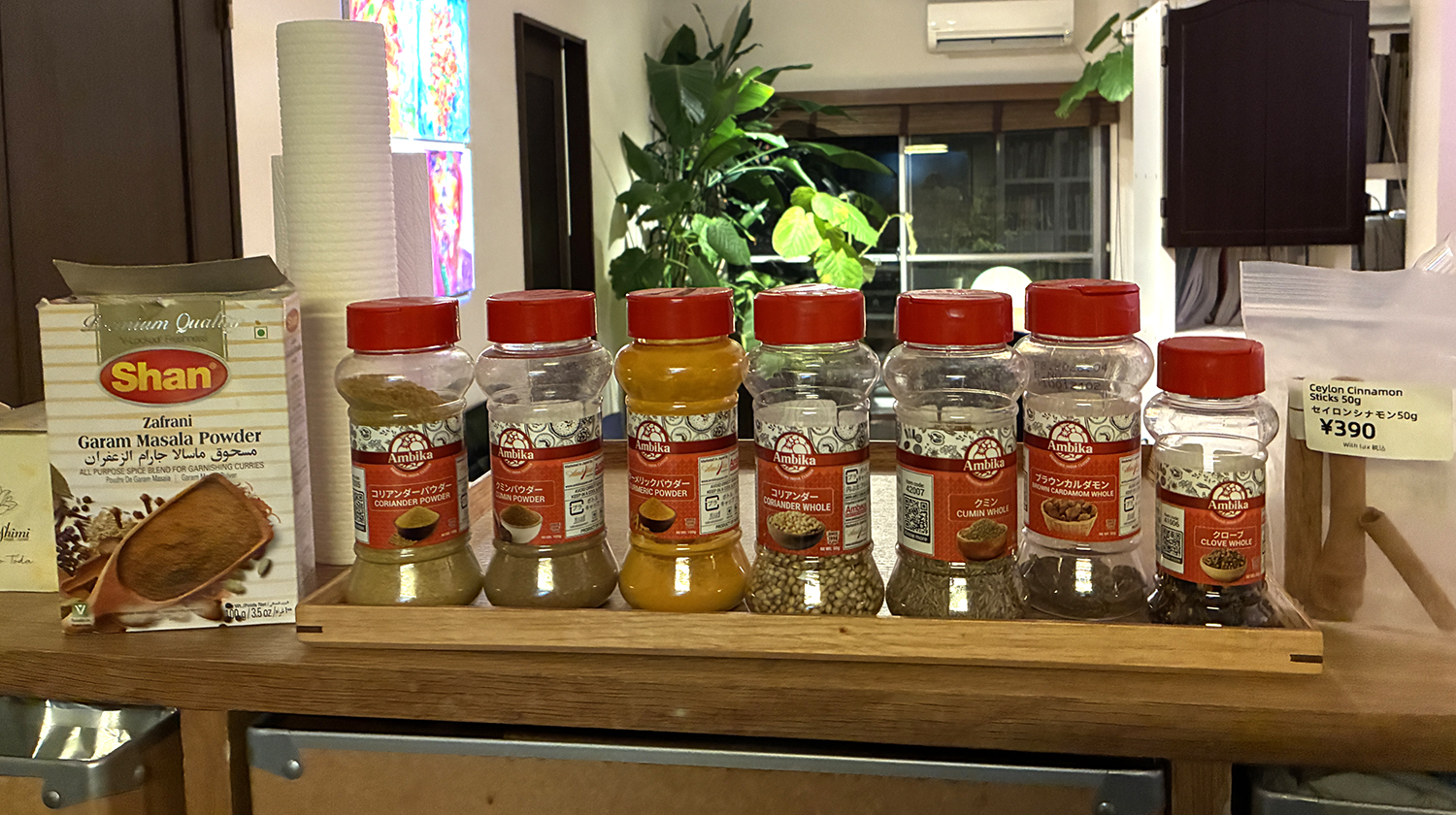 これだけのスパイスがあれば、美味しいカレーが作れるらしい。ドイツで日本のカレールーを買おうとすると高いから、作ったらいいんじゃないかって話になったけど、どうでしょうか。やるかなぁ。