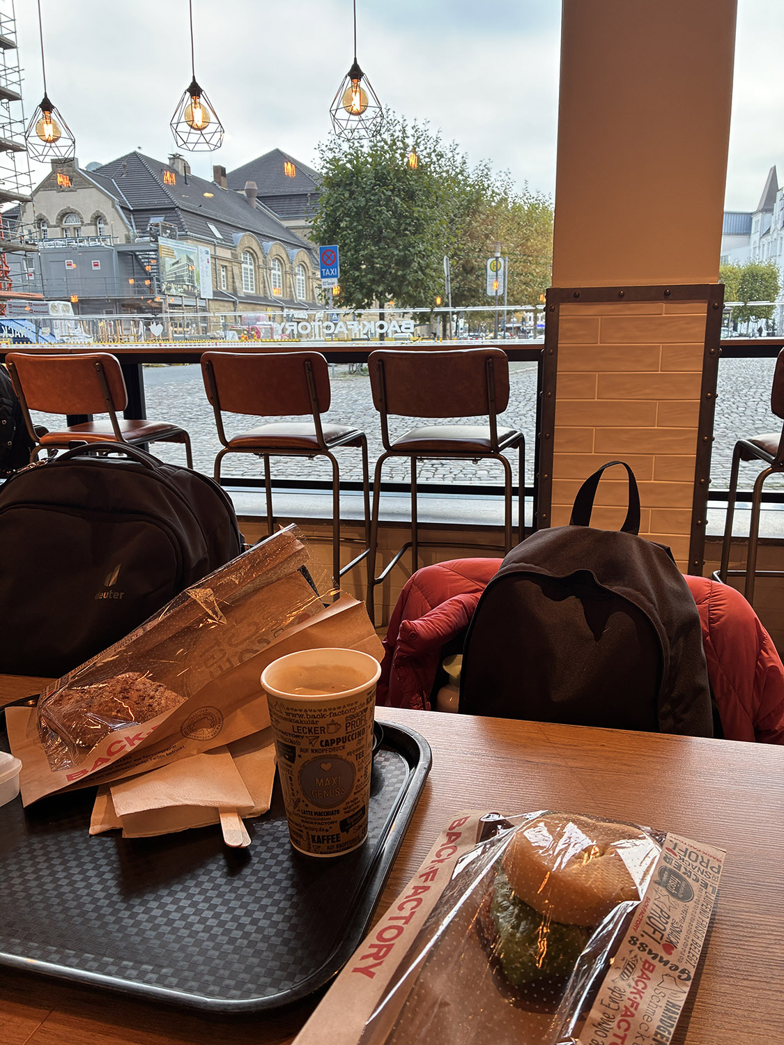 日曜日、エッサンがずっとテルマ(温水プール的な)に行きたいだ!ということで、ハイキング&テルマへ。駅の前のベーカリーの朝食から始まる。