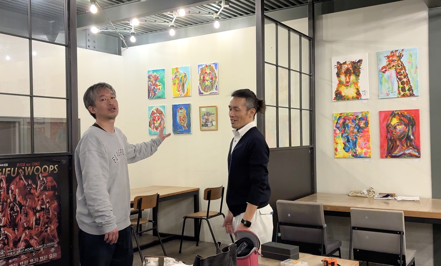 絵画教室の参加者さんの絵をドイツでの個展で飾ってみて、けっこう楽しかったので、岐阜でも。ここのゾーンを百合子さんにお任せして、