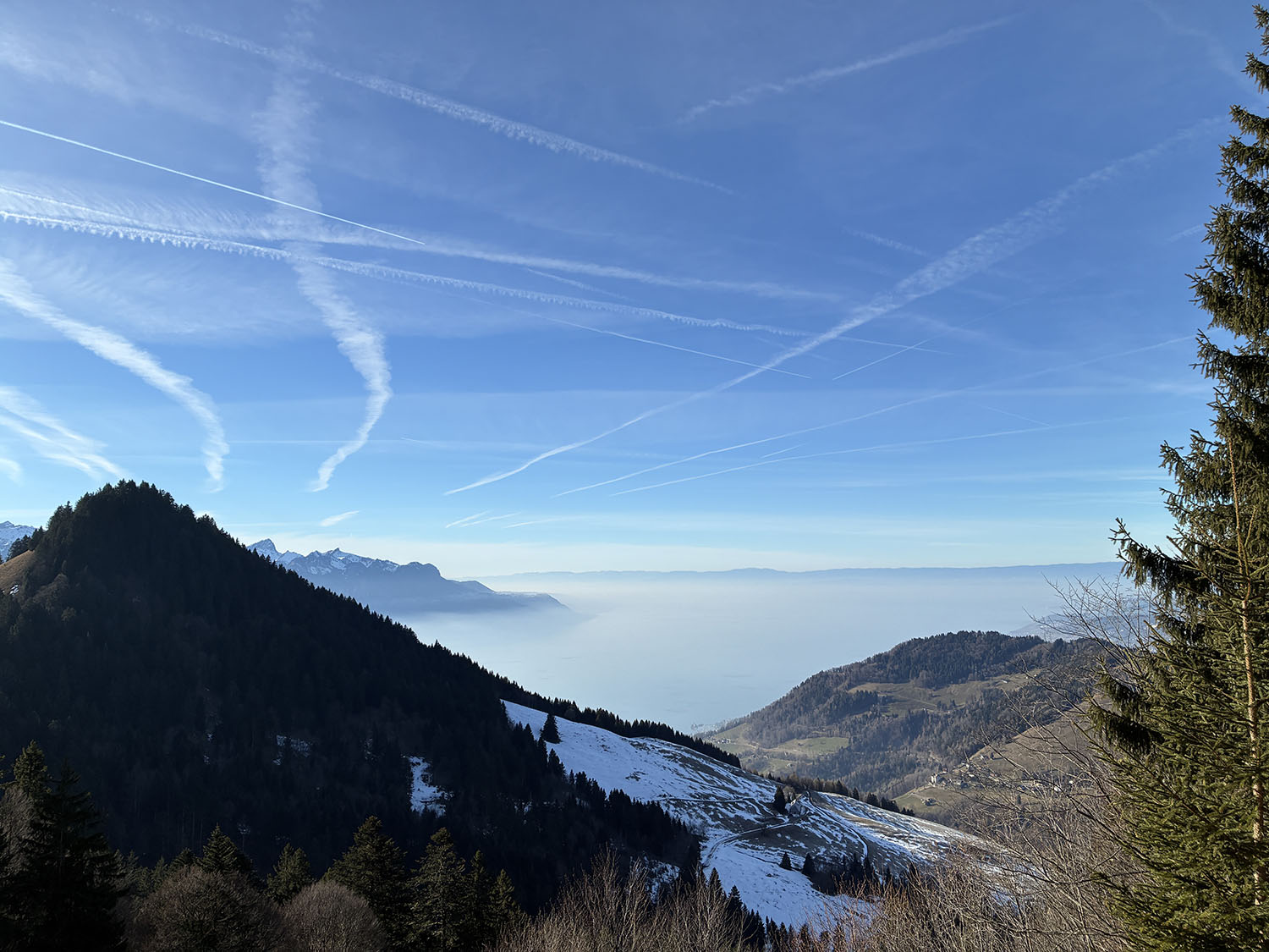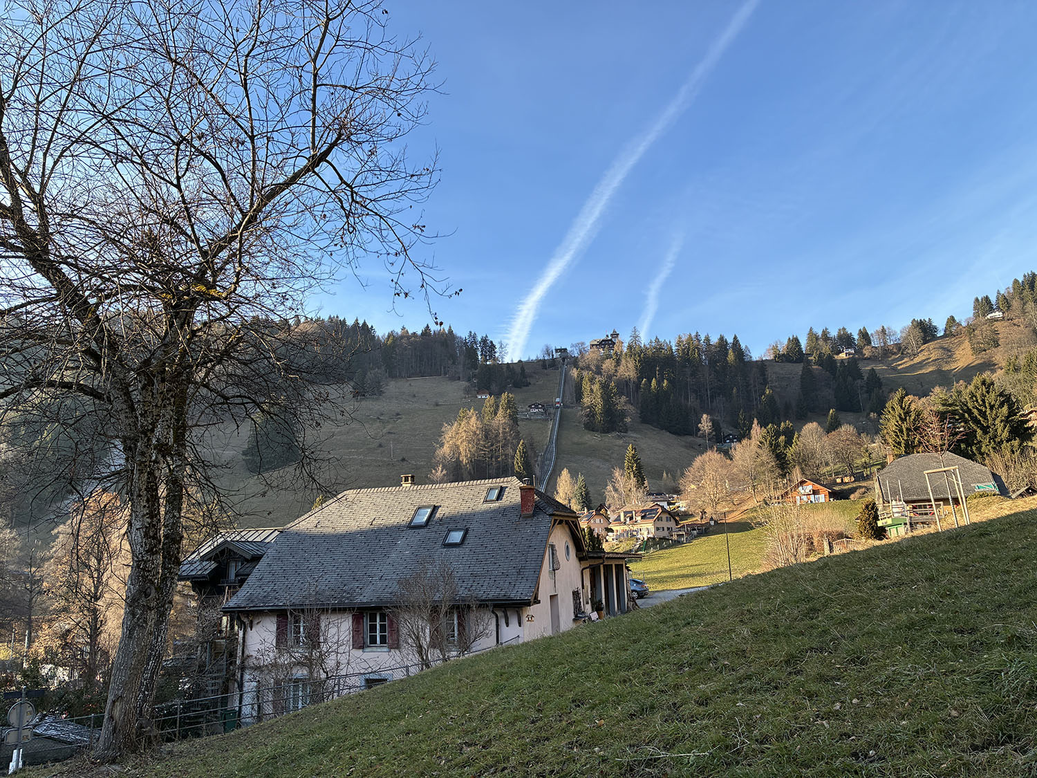 気持ちいいね。ドイツから見るとスイスは南側なので、空が青い!!ビーレフェルドの12月空は、ほぼいつも曇っています。