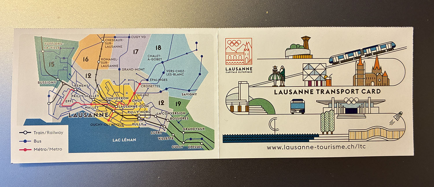 スイスのホテルに滞在すると、公共交通機関のチケットもくれたりします。高いからね。嬉しい。