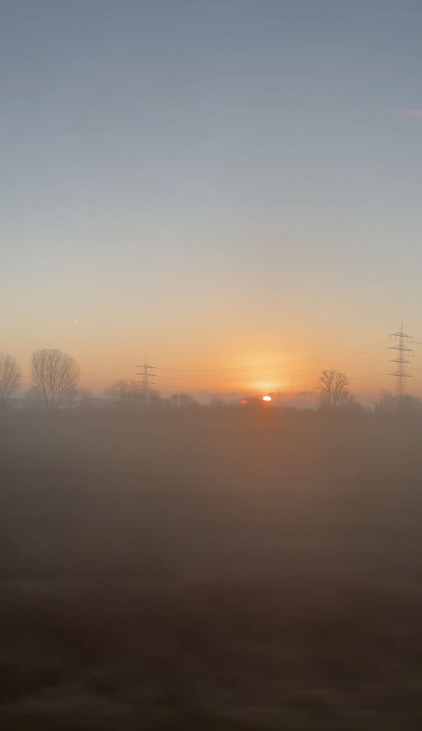 電車からの朝日。