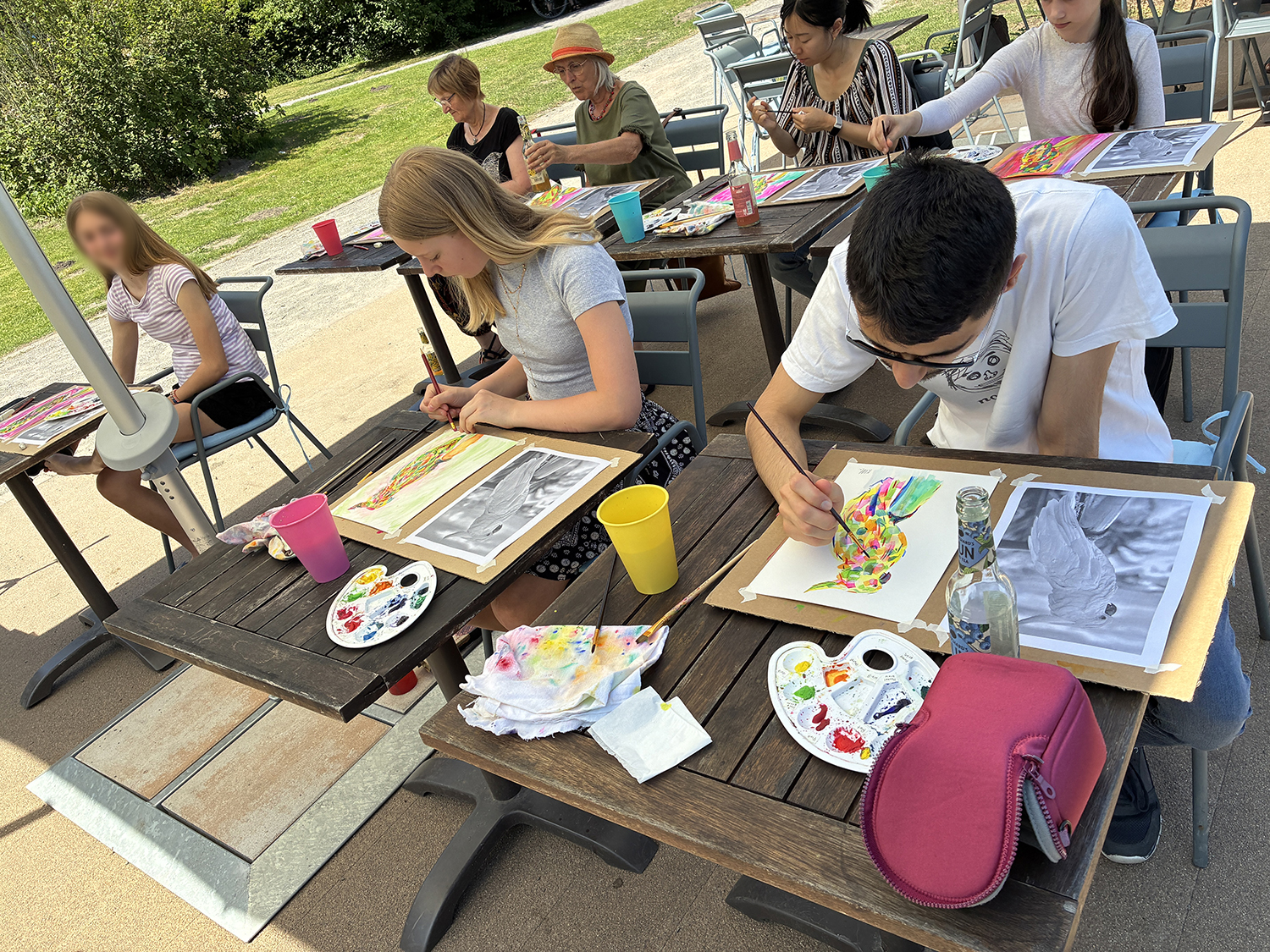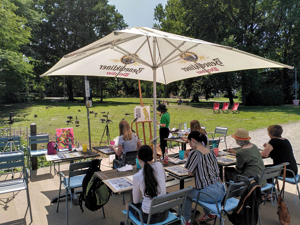 Möchten Sie ein farbenfrohes Bild malen? Die japanische Künstlerin Miki malt mit Ihnen, wie Sie ein farbenfrohes Bild malen können.